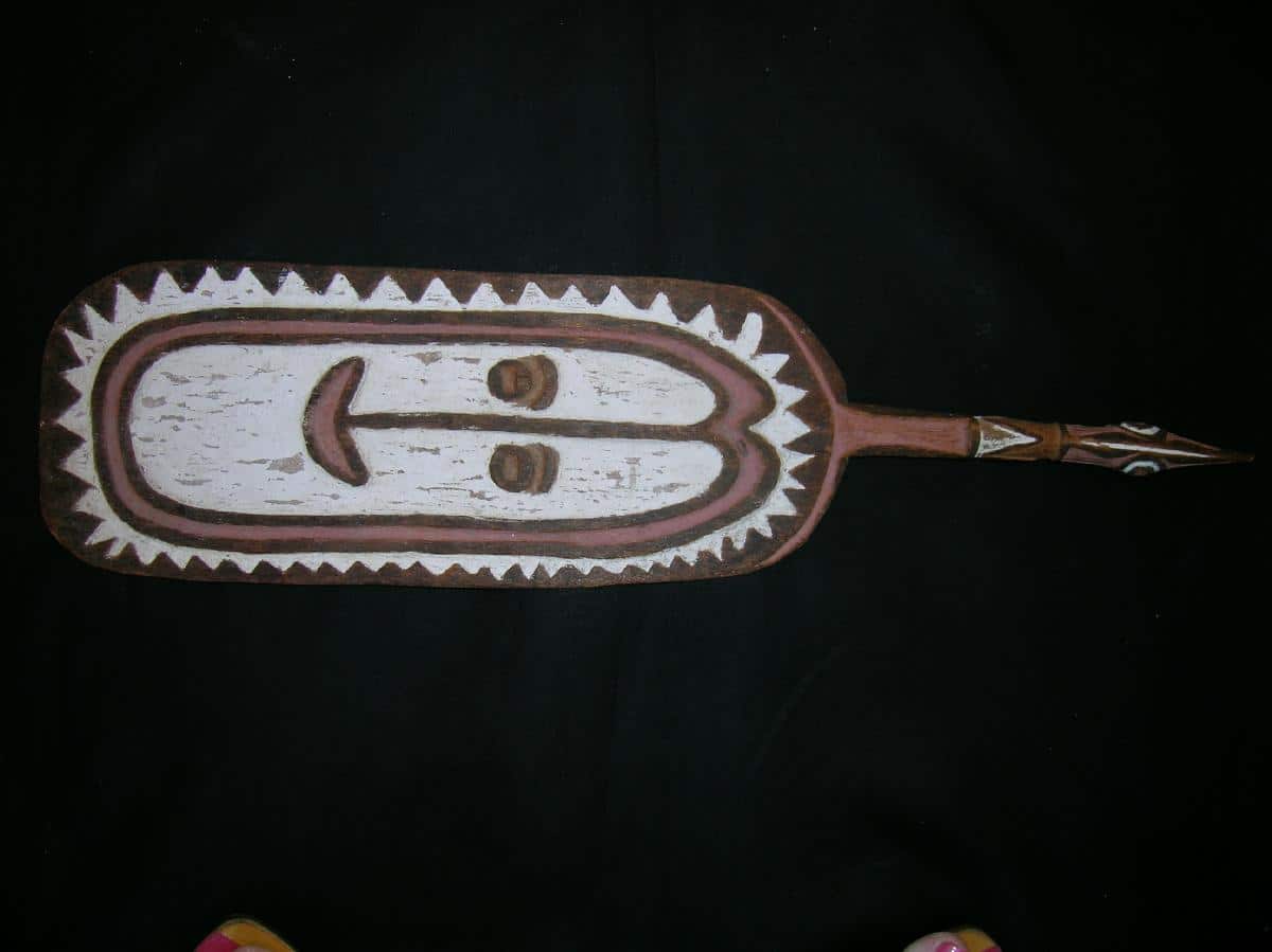 These items present specific community identity carvings recognised among the river dweling communities and usually are made by/for a community leader who carries it as a badge of honour particularly when travelling through the river system by canoe.