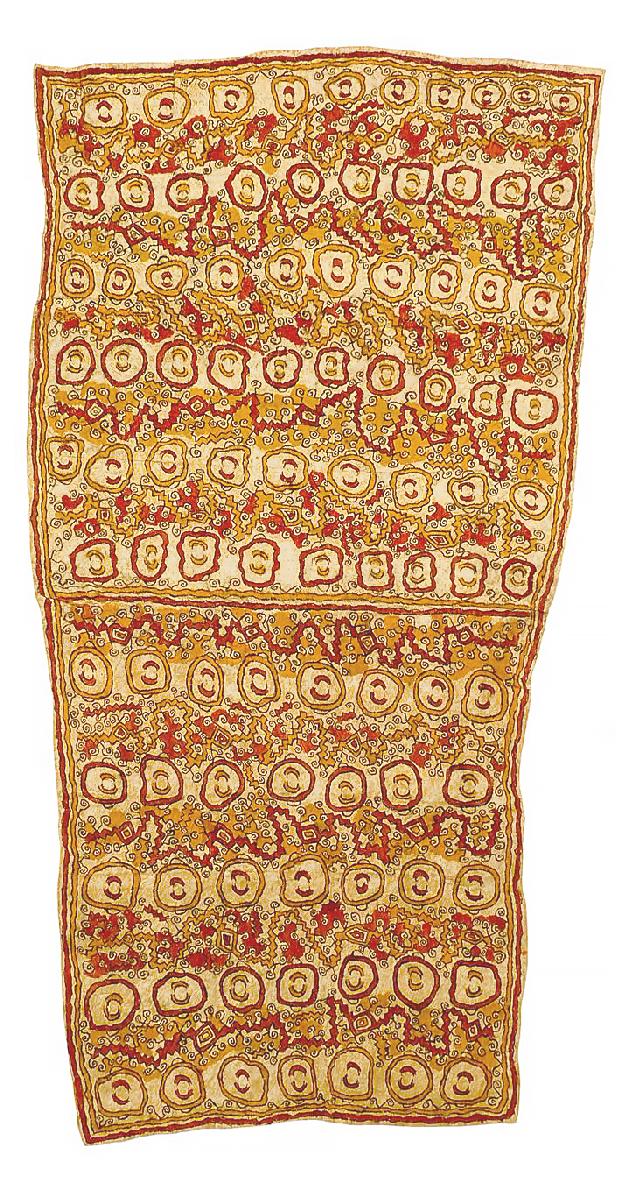 Natural pigments made from fruit, nuts leaves and ash. (The yellow colour comes from the Sandlewood seed) Barkcloth is made from the inner bark of Rainforest trees which is beaten until flat and thin