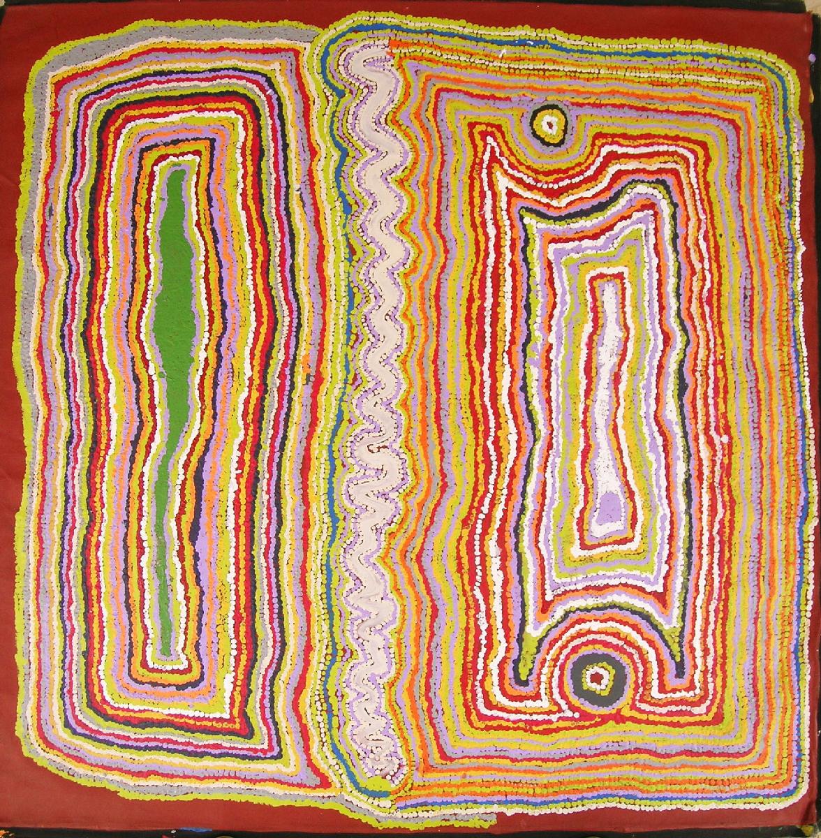 This is a story about Kaliny-Kaliny (Honey Grevillea) Two male water snakes, father and son are living at Pukara, a waterhole in Western Australia. Anangu tjuta (lots of people) come to the rockhole for the sweet water. The father says, ‘Go back to your own country’ The people leave and the father and son travel to Willuna where they camp.